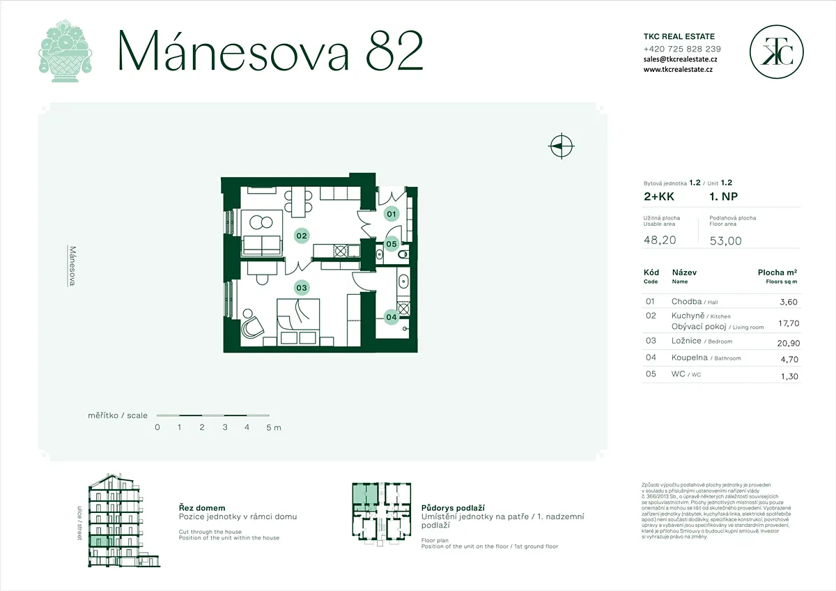 Nabízíme nadstandardní byt 2+kk o velikosti 53,3 m², situovaný v 1. nadzemním podlaží zrekonstruovaného secesního domu v prestižní lokalitě pražských Vinohrad.