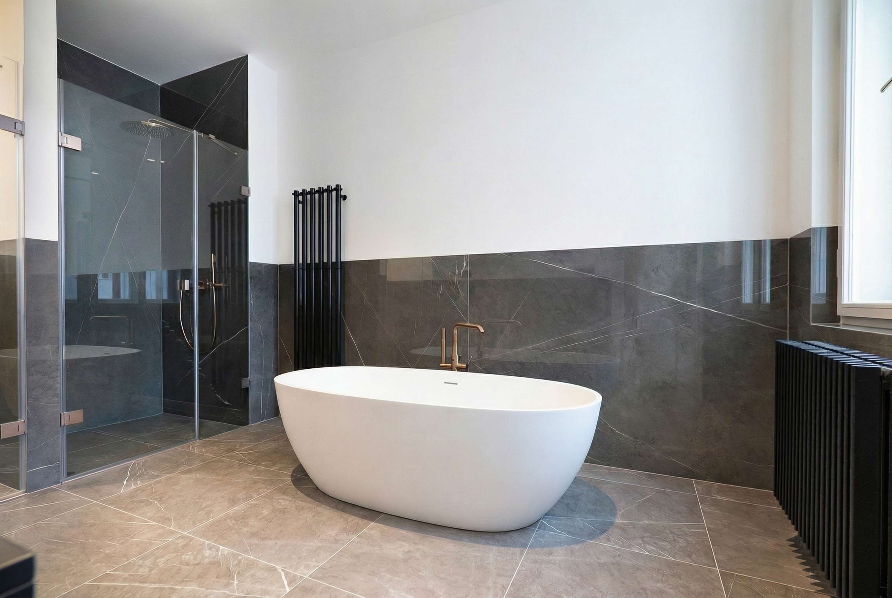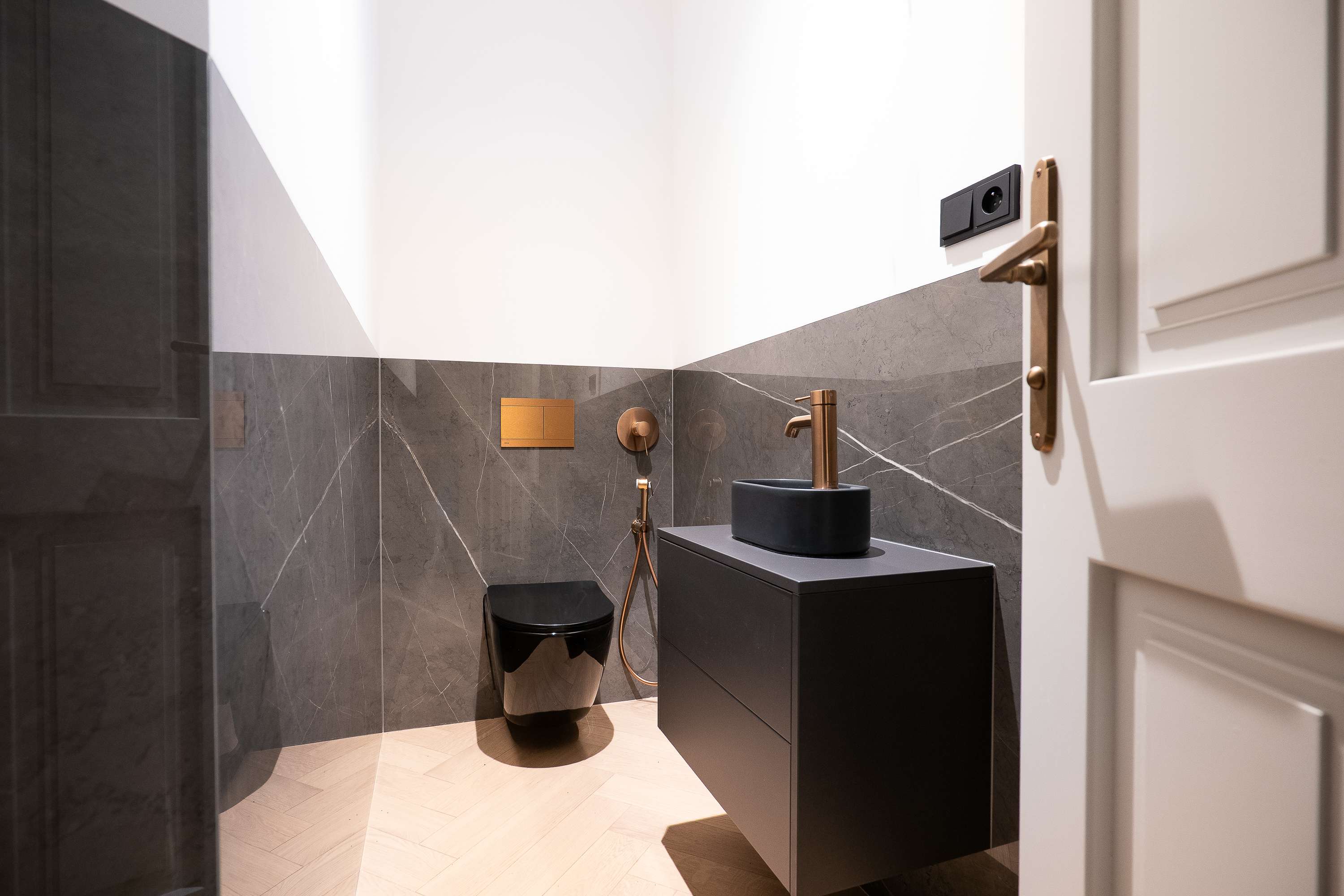 Soukromou část tvoří master bedroom s vlastním vstupem na druhý balkon a privátní koupelnou, která je vybavena prostornou vanou i samostatným sprchovým koutem. Toto uspořádání poskytuje maximální komfort a soukromí, jaké ocení i ti nejnáročnější klienti.