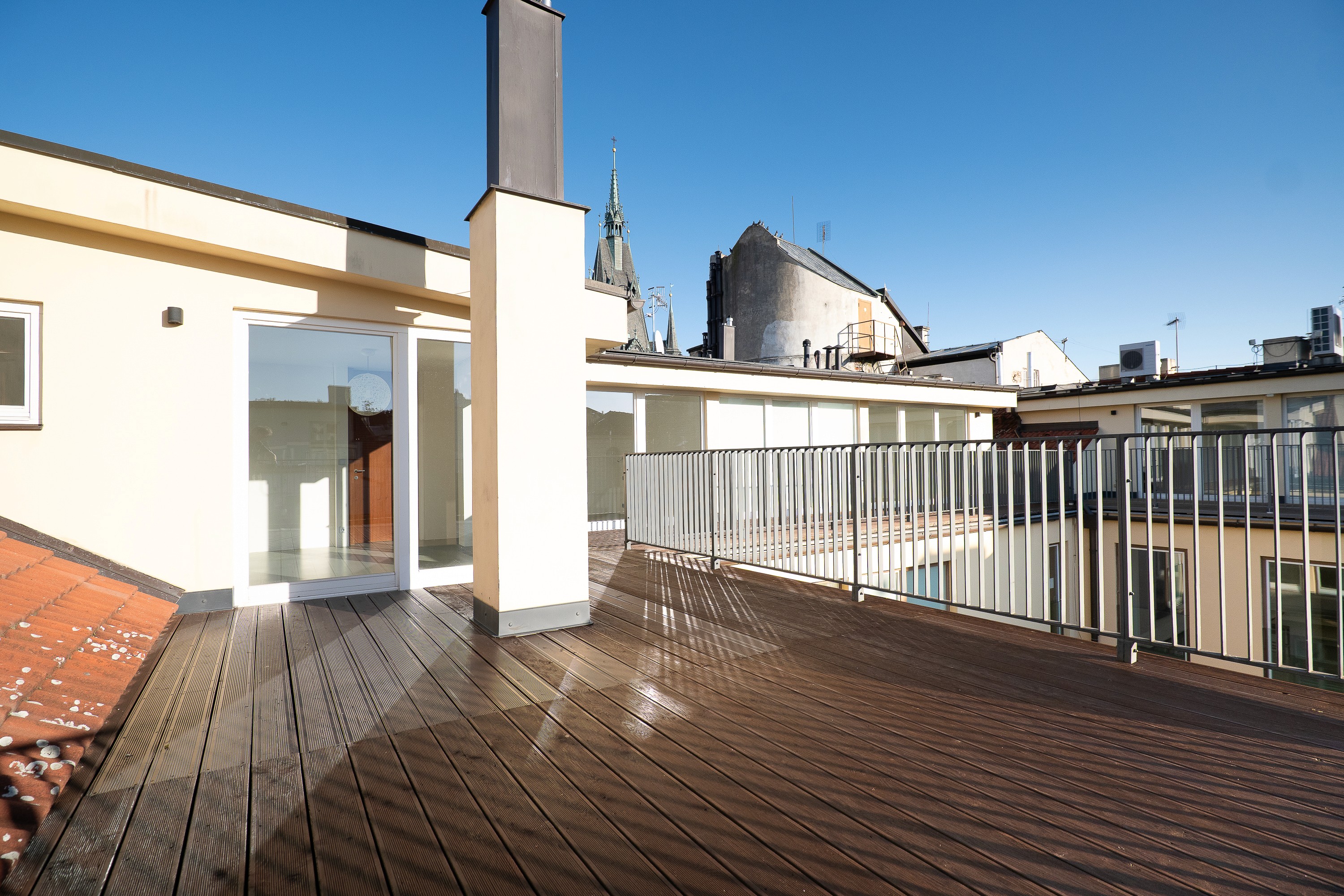 Součástí bytu je také 31 m² velká terasa s výhledy na centrum Prahy a orientací do vnitrobloku.